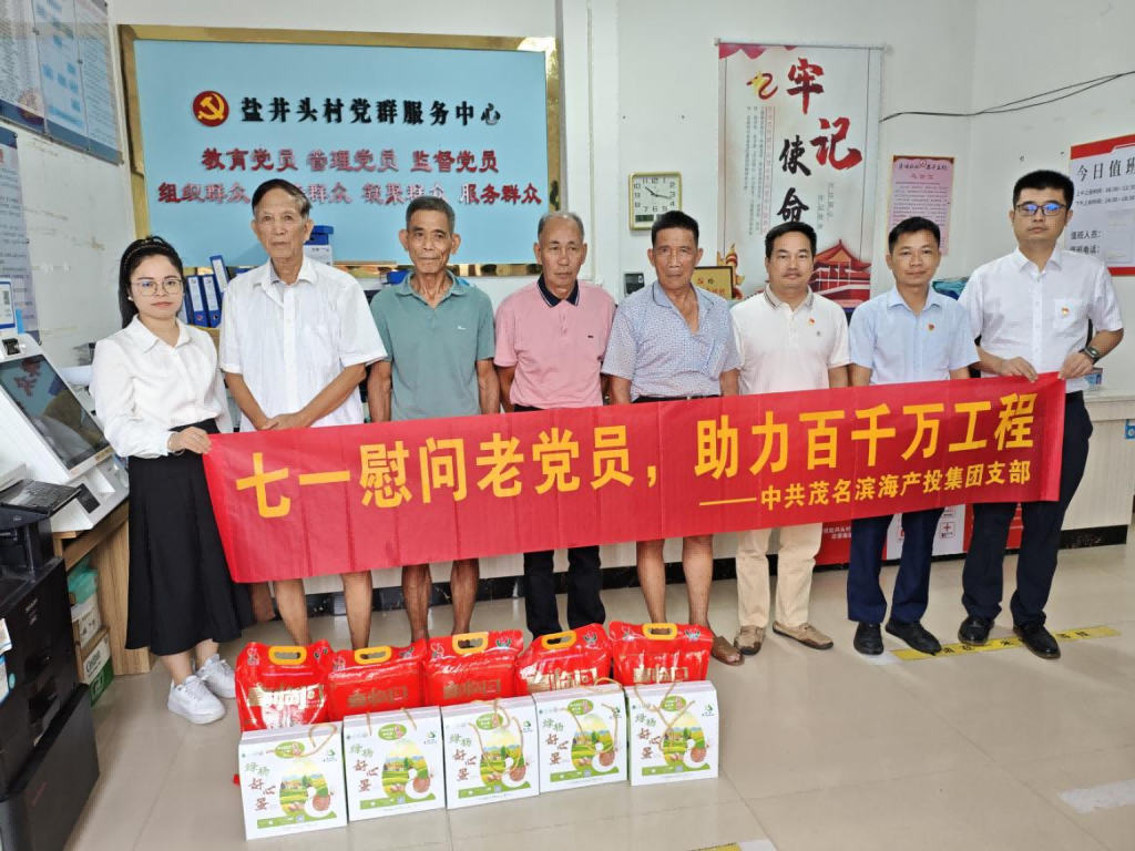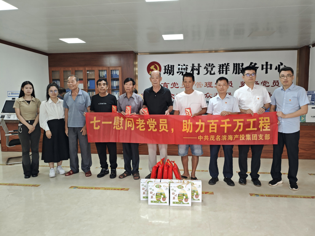 在庆祝中国共产党成立104周年之际,为弘扬党的光荣传统和优良作风,深入践行国企社会责任,6月30日,中共茂名滨海产业投资集团有限公司支部委员会组织党员、发展对象及积极分子,赴博贺镇瑚塘村、盐井头村开展“七一慰问老党员,助力百千万工程”主题活动,走访慰问困难党员、老党员及离任干部,为他们送去组织的关怀与温暖。