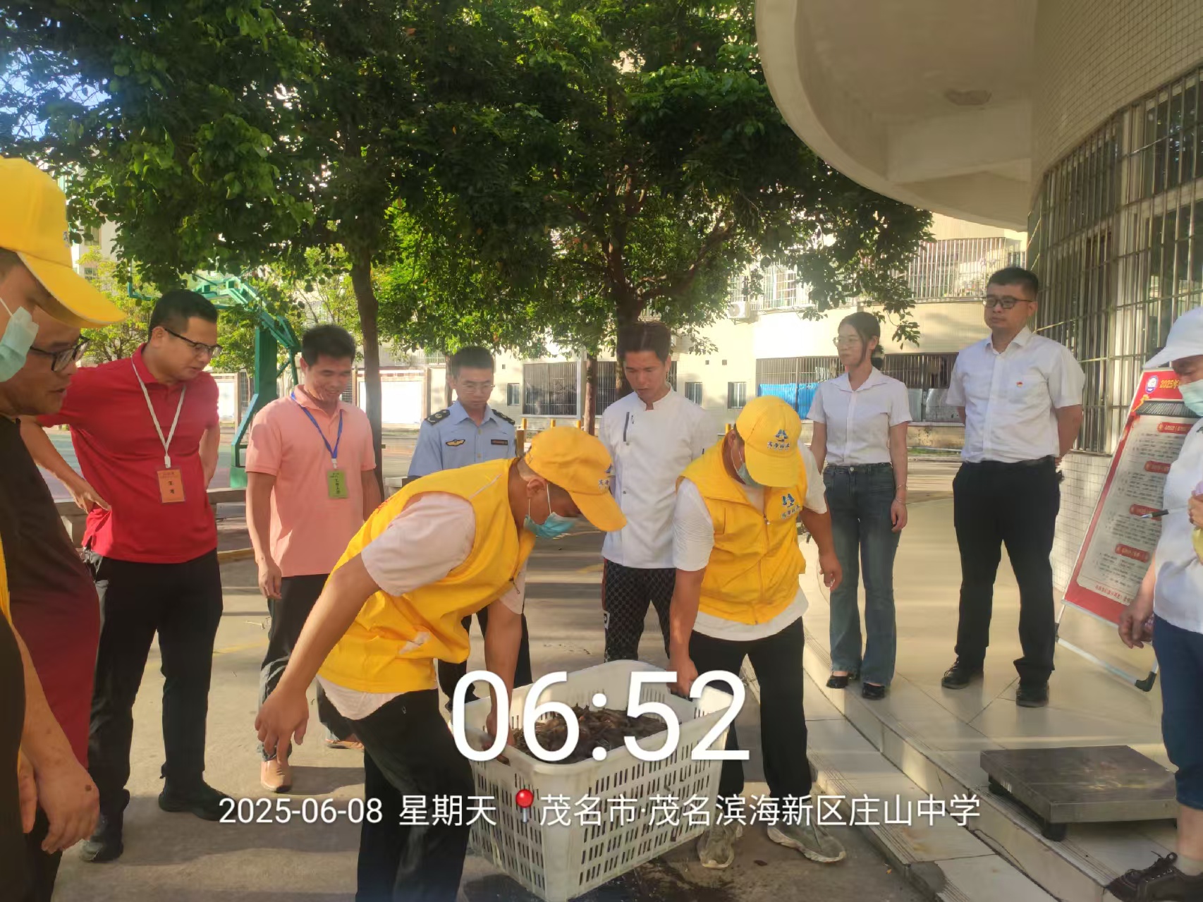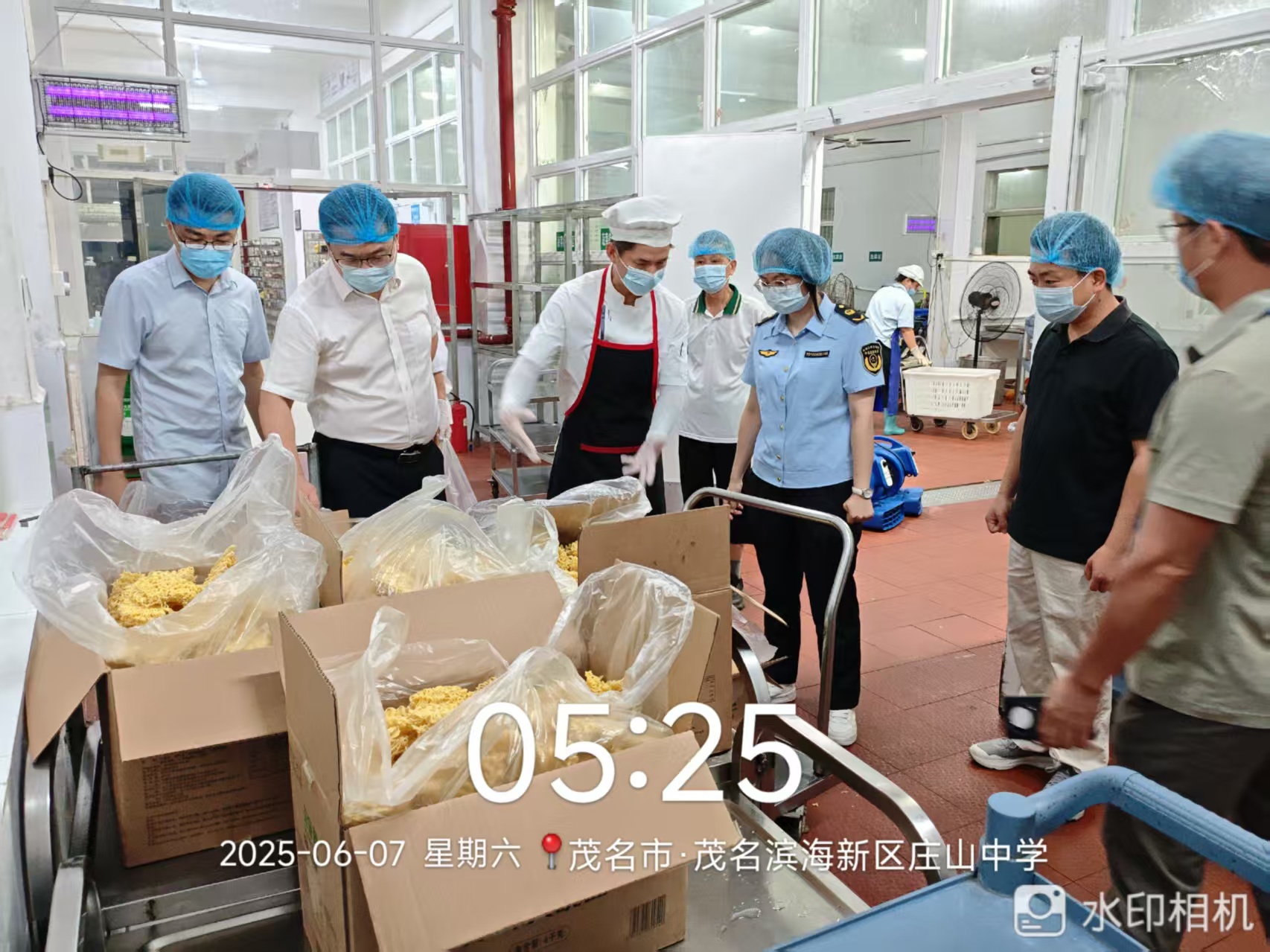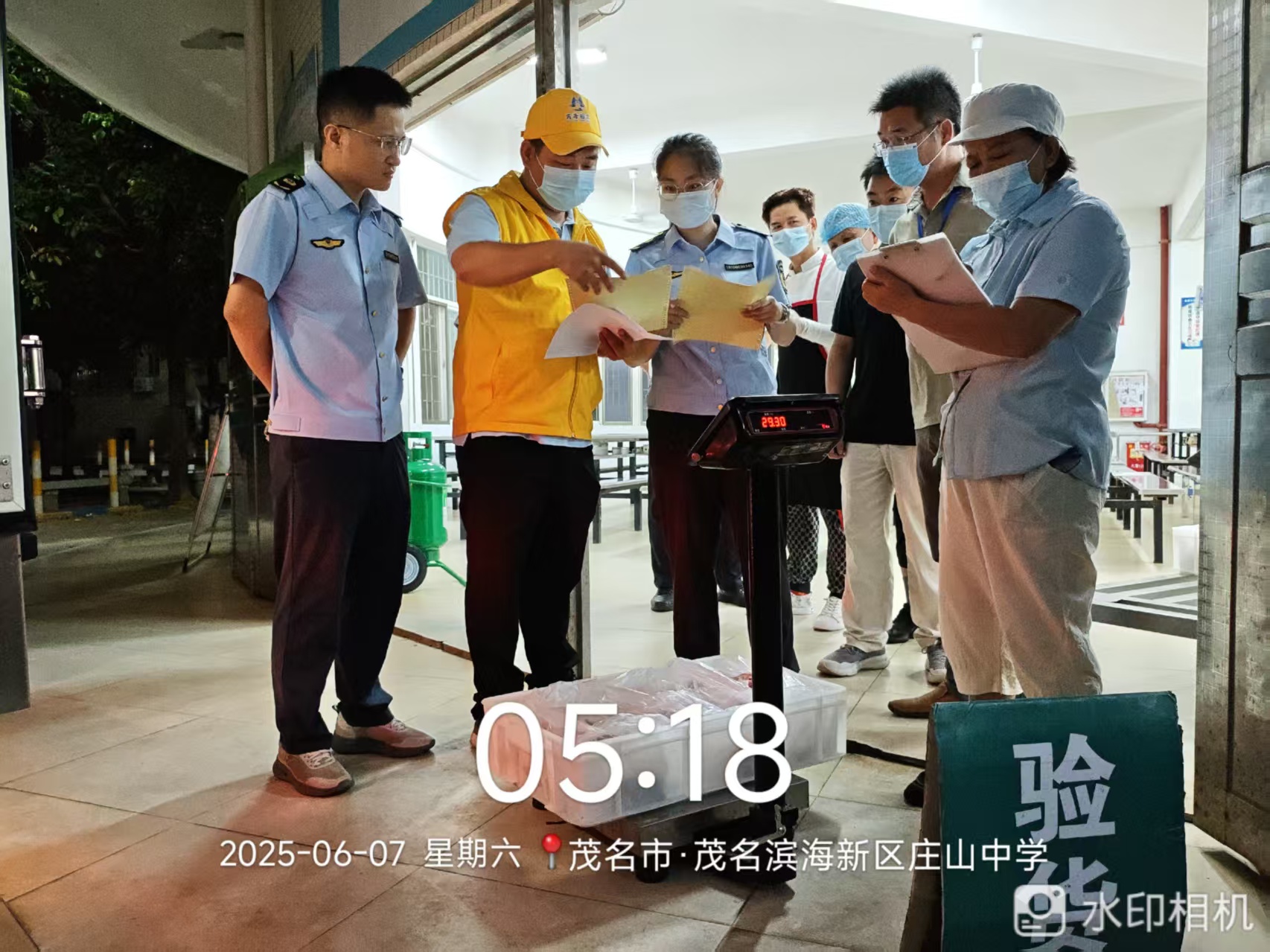 2025年6月7日凌晨5时,茂名滨海产业投资集团有限公司(下称“集团”)董事长黄远维率集团校园餐食材配送价格监督小组(下称“集团监督小组”)抵达电白四中考点,配合区市场监管局执法人员开展高考食品安全专项监督检查,以实际行动响应副市长、滨海新区党工委书记梁荣杰和滨海新区党工委副书记、管委会主任黄鹏关于高考食品安全保障工作的指示精神,全力守护考生“舌尖上的安全”。