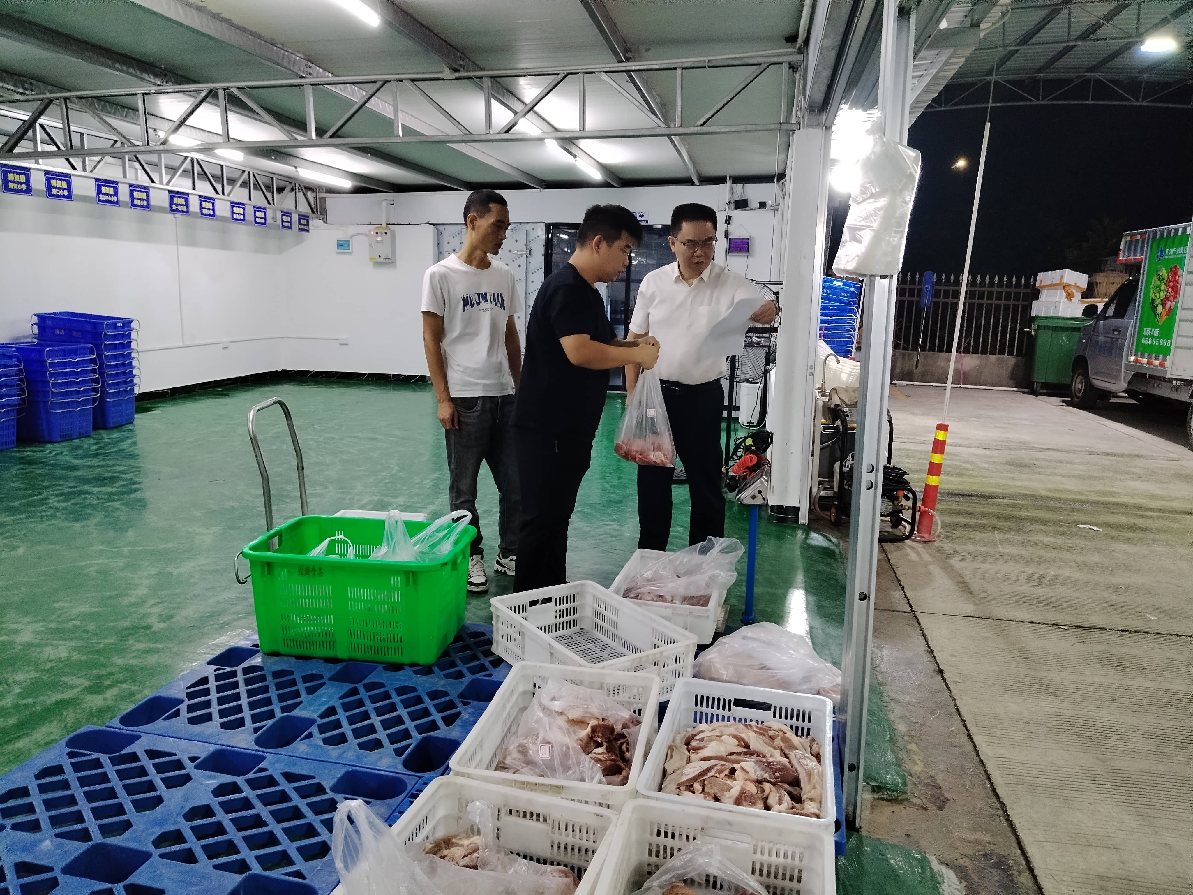 督查时间特意选在食材入库、农残检测和分拣的晚上(19:30-23:30)和食材出库、加工和配送前核验的凌晨(04:30-06:30)两个关键时间段——这是供应链最关键、最繁忙也最易出现疏漏的环节。黄远维同志直抵卸货平台、分拣中心、检测室与冷链仓库,直面真实作业场景。他强调,要树立“人人都是质检员”的责任意识,从食材入场到配送上桌的每一个环节都要严格把关,力求发现真问题、解决实际问题,充分展现了党员干部求真务实的工作作风,有效杜绝形式主义,确保督查工作穿透有力、实效显著。